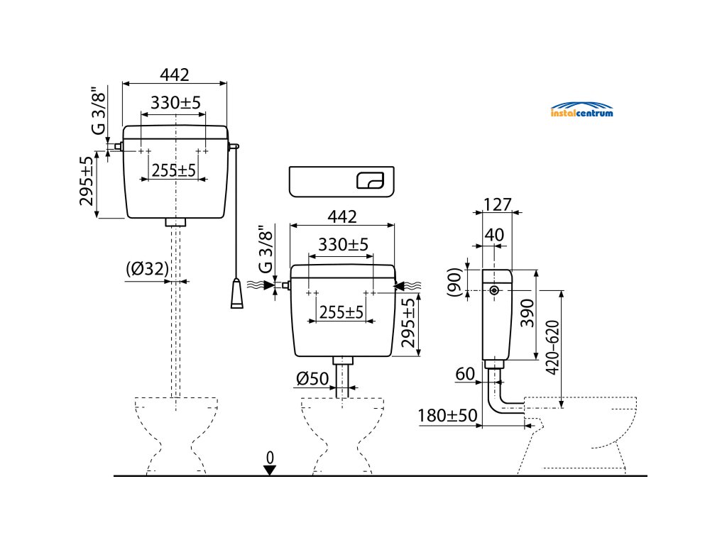 Při instalaci na vysoko položenou nádržku je funkční pouze velké spláchnutí | 6 – 8 l |