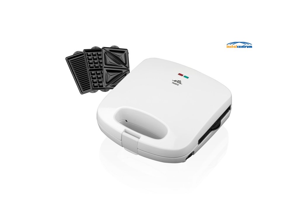 ETA Tampo 4156 90000 kombinuje 3 v 1. Připraví chutné sendviče, lahodné vafle i řadu grilovaných pochoutek. Obsahuje 3 výměnné pracovní desky (sendvičovací trojúhelníky, vaflovací a grilovací) s antiadhezním povrchem, který minimalizuje připálení a přichycení.
