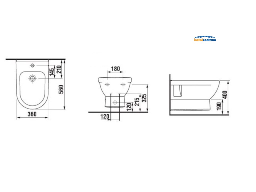 Závěsný bidet Mio od společnosti JIKA s otvorem pro baterii, délka bidetu 56 cm.