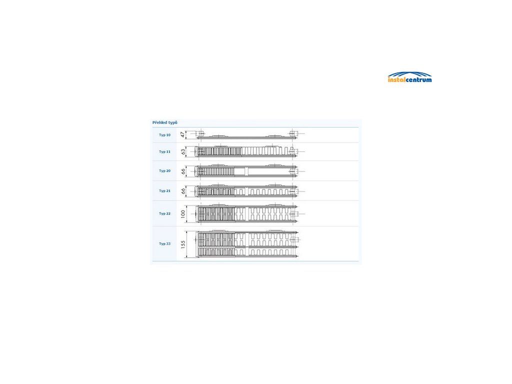 - typ 20 (hloubka: 6,6 cm) - dvě desky, bez lamel