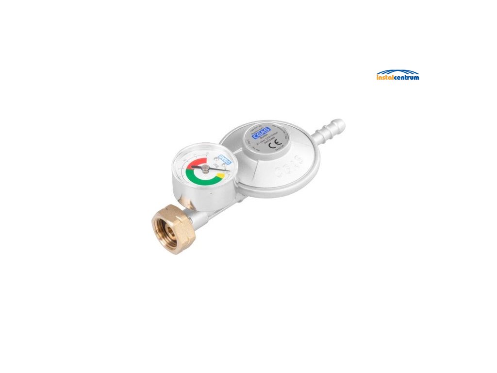 Regulátor plynu CGAS C31-30 s manometrem pro regulaci tlaku plynu 28-30 mbar. Regulátor samočinně snižuje tlak plynu a udržuje jej v nastavené výšce. Je navržen pro používání v zakrytém prostoru, aby nedošlo k ucpání vzduchového otvoru. Vstup: převlečná matice s levým závitem W21,8x1/14". Maximální vstupní tlak: 7,5 bar. Výstup: nátrubek o průměru 8 mm. Průtok: 1,5 kg/h. Norma EN16129.