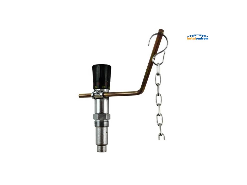 Regulátor tahu pro kotle na tuhá paliva. Reguluje výstupní teplotu pracovní kapaliny ze zdroje na hodnotu nastavenou knoflíkem.